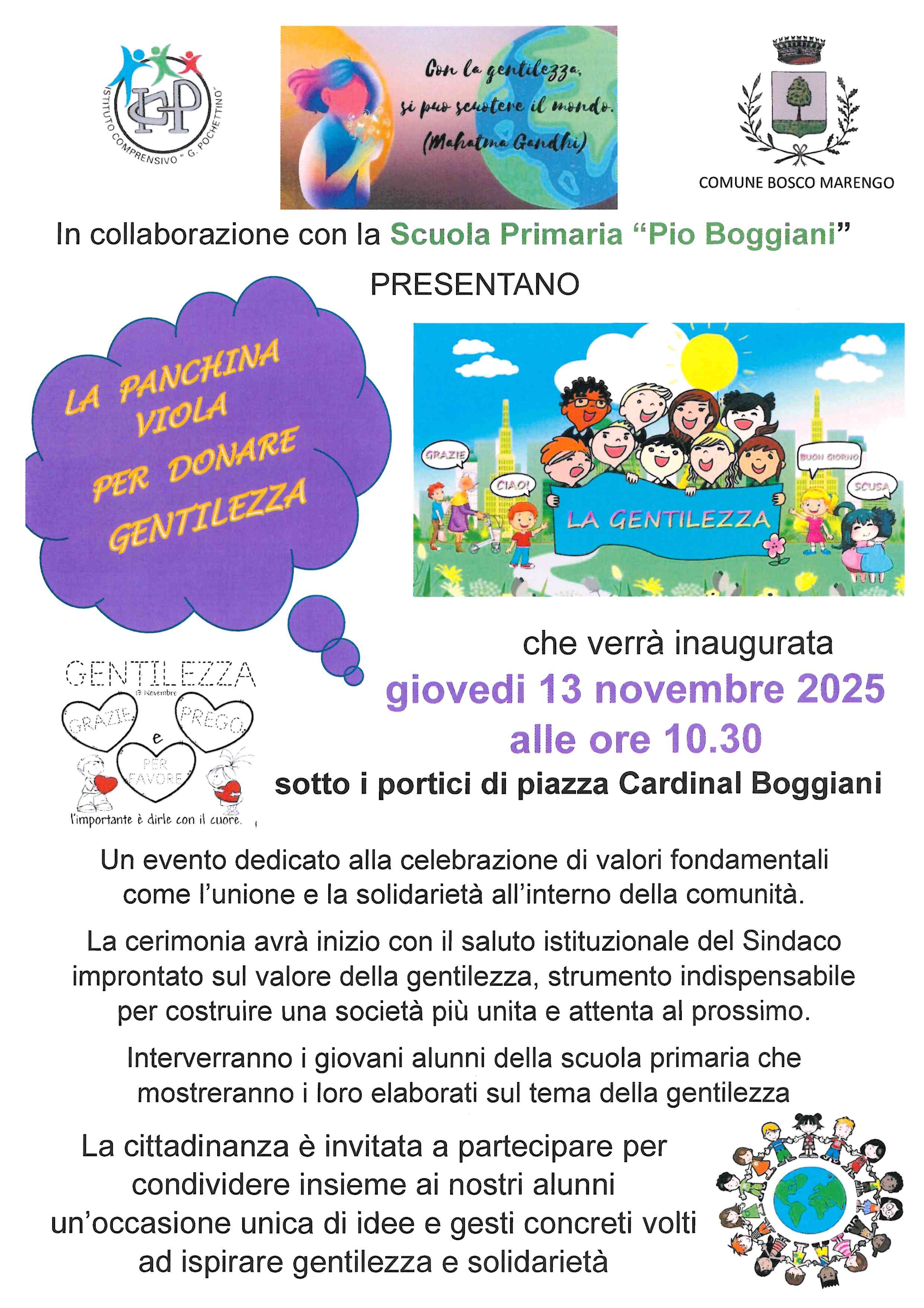 - Intervento dei giovani alunni della Scuola Primaria che mostreranno i loro elaborati sul tema della gentilezza